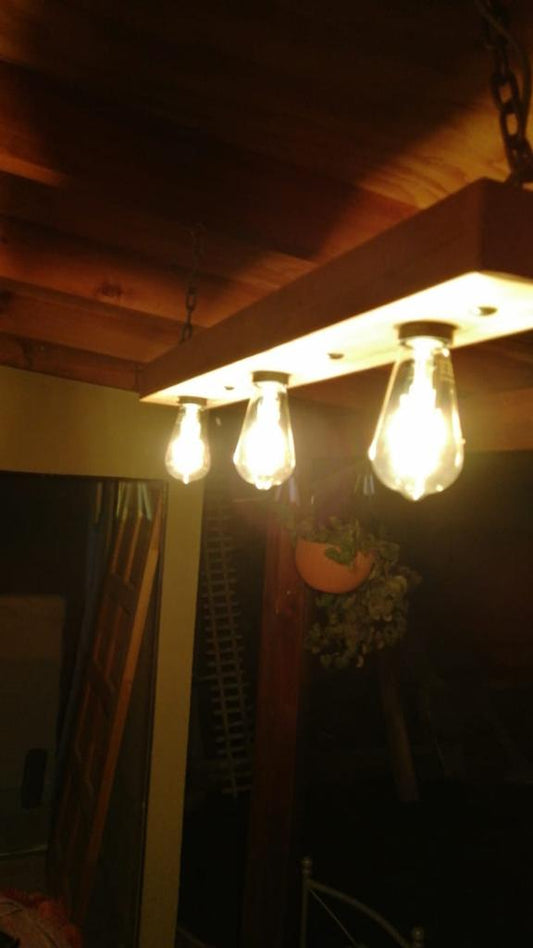 Lámpara Rústica De Madera 3 Ampolletas